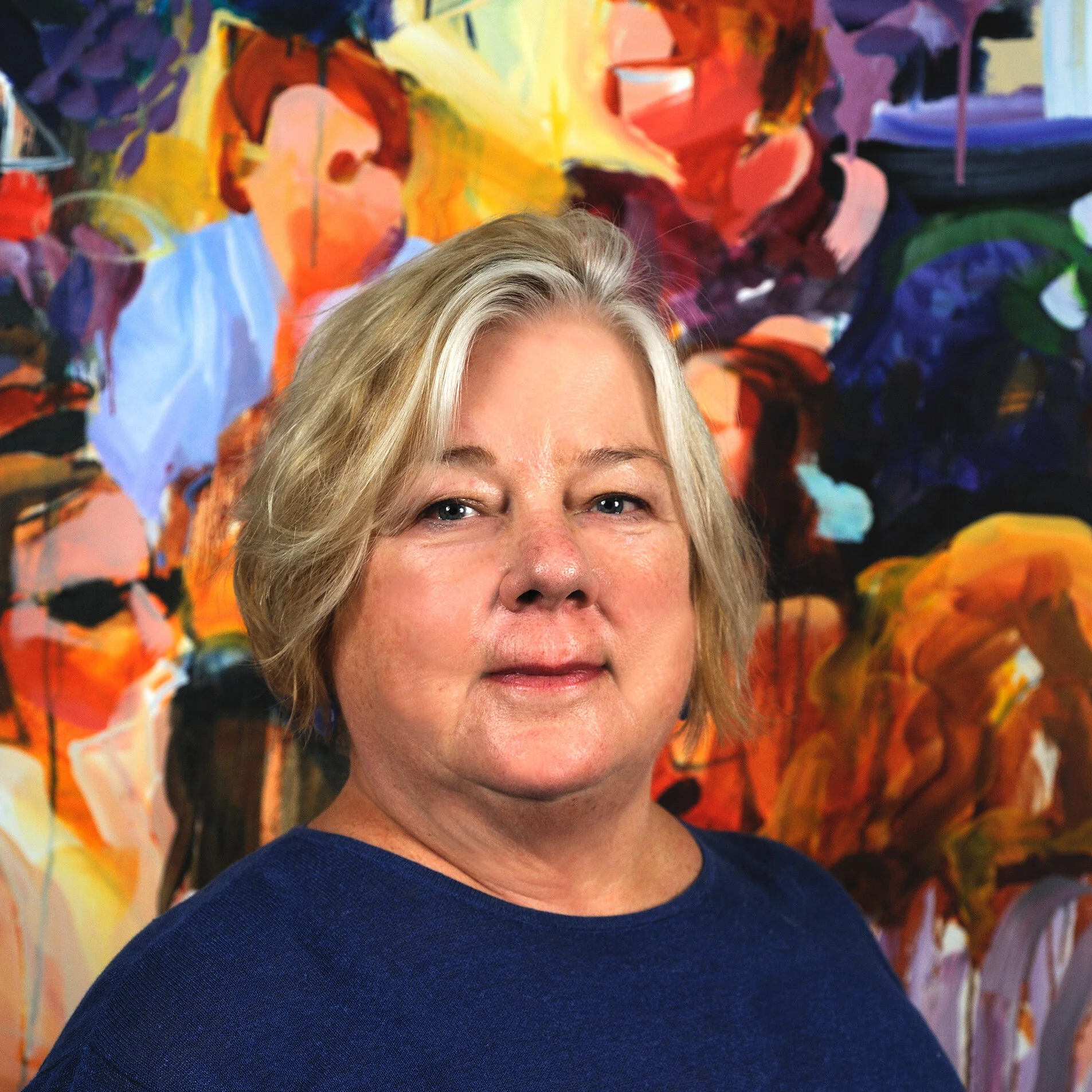 Kauffman's creative process begins with photographing her subjects in the park. In her studio, she composes experimental digital collages, adjusting elements and enhancing color intensity to form a rich, layered starting point for her paintings. Using transparent oil washes as a foundation, she applies expressive brushwork to build fluid, dynamic surfaces that balance visual beauty with underlying tension.